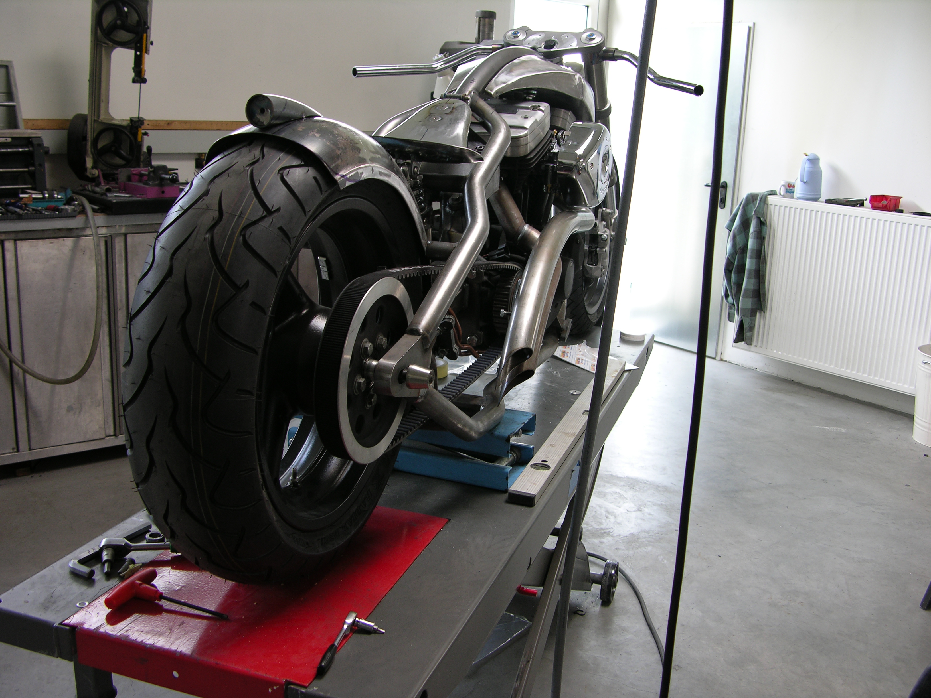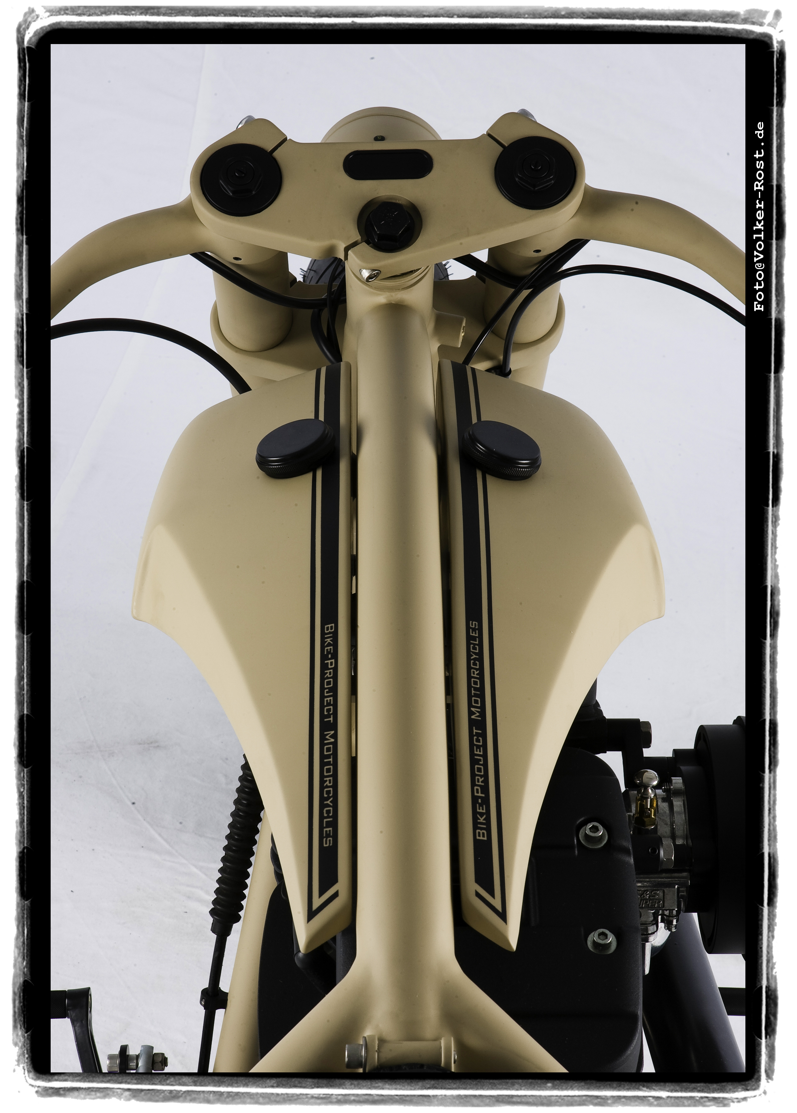 Alle Blechteile: Die 2 Tanks, Öltank mit starren Leitungen, Heckteil, Lenker, Batteriebox, Sattel und viele Kleinteile wurden von Udo in Handarbeit hergestellt.